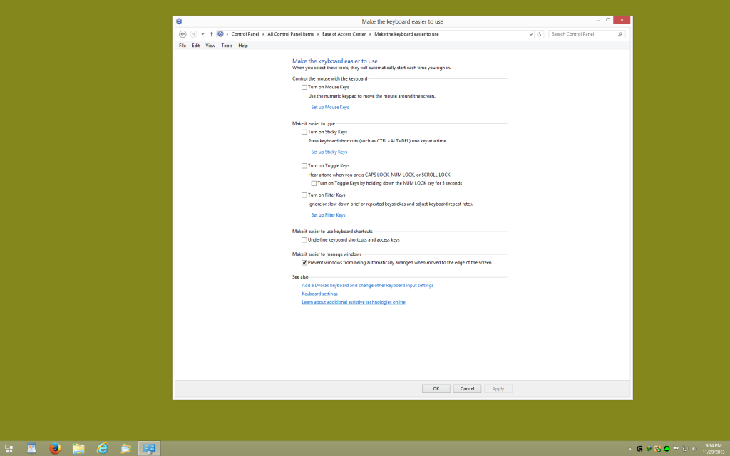 First, check your ease of access settings in control panel, and make sure it matches this picture.